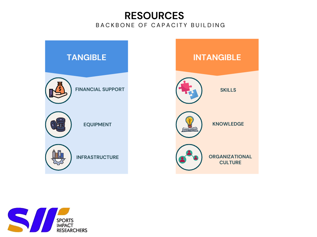 - Resources are the backbone of capacity building and can be tangible or intangible.