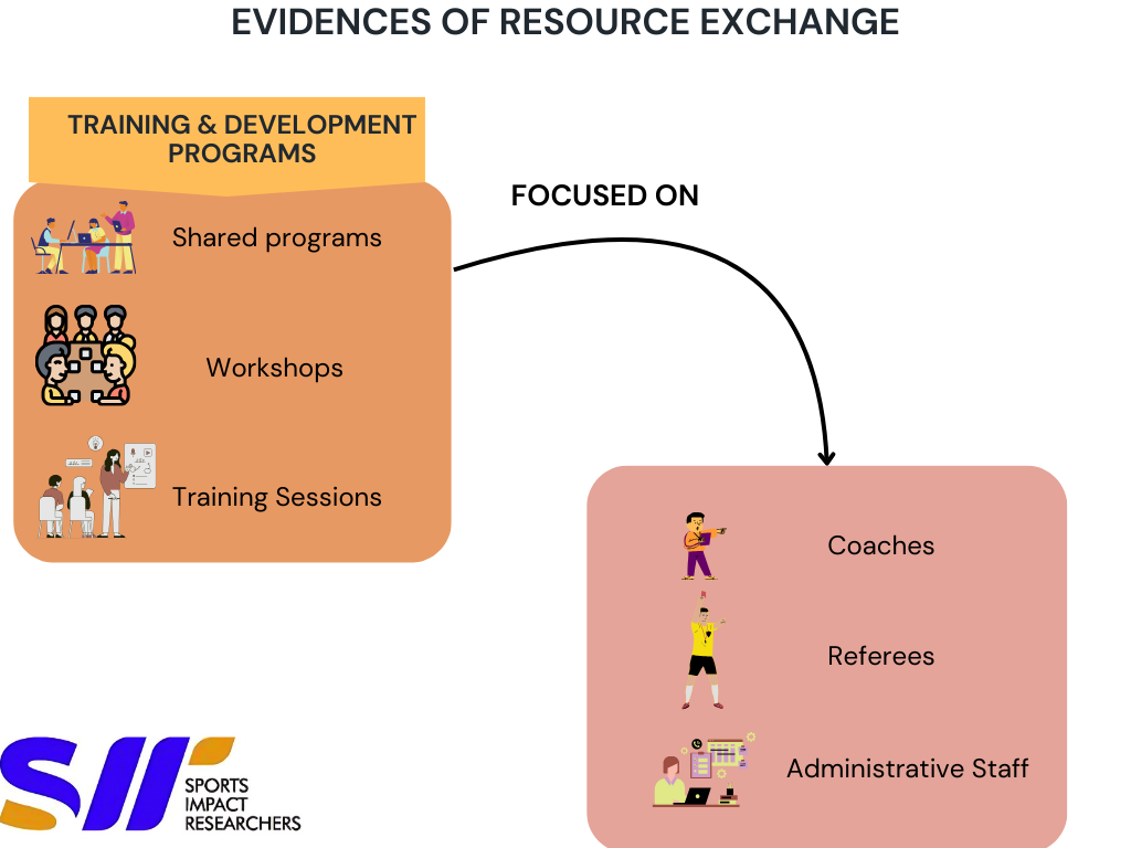 - There is significant evidence of resource sharing, especially in training and development programs aimed at coaches, referees, and other administrative staff.